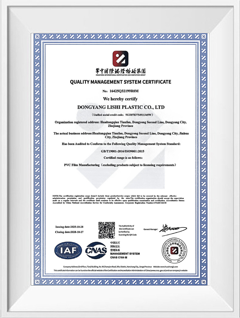 Компания Dongyang Lishi Plastic Co., Ltd., основанная в июне 2000 года, выросла под руководством председателя Ли Юньвэня, твердо приверженного принципам честности, инноваций и предпринимательства. Благодаря многолетним самоотверженным усилиям компания теперь управляет пятью современными производственными линиями и достигла годовой стоимости продукции более 100 миллионов юаней. Основная продукция компании включает цветные пленки, стандартные прозрачные пленки, сверхпрозрачные пленки, белые печатные пленки и матовые износостойкие пленки. Эти продукты широко используются в упаковке, гигиенической защите, производстве переработанных напольных покрытий и других областях и продаются по всему Китаю.